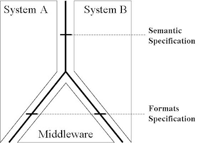 The only document that can be directly shared, between the teams of the respective applications/systems to integrate, is the semantic specifcation capturing the meaning of the information (i.e. the semantic) to be exchnaged by the two applications/systems.